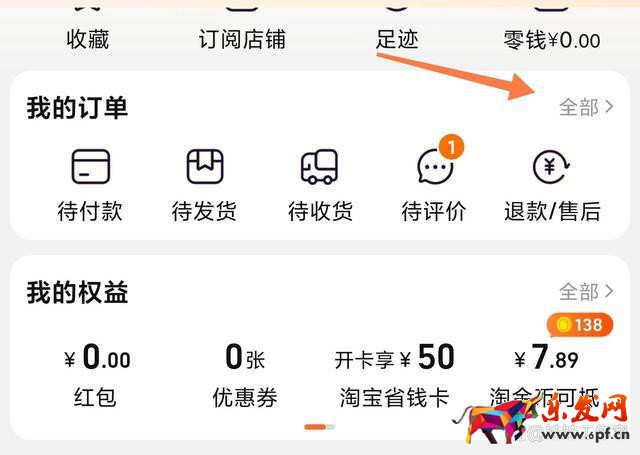 1、在淘寶app我的淘寶中找到我的訂單,點擊右側的全部。