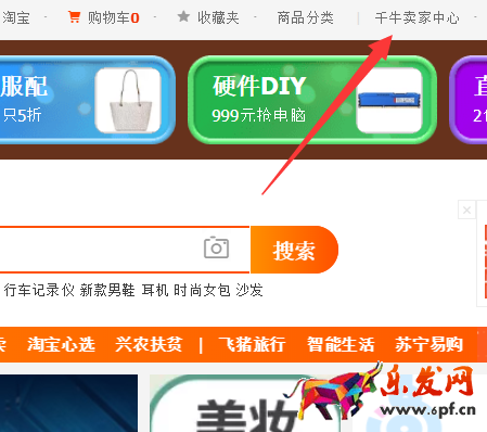 1、在瀏覽器上打開淘寶網,點擊右上角的千牛賣家中心。
