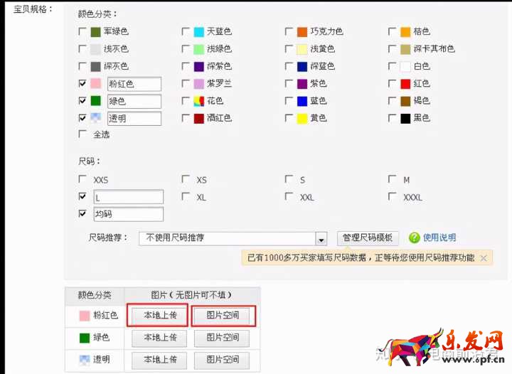 只要勾選需要的顏色選項,然后在截圖中紅框所示位置通過本地上傳或圖片空間上傳圖片即可哦。