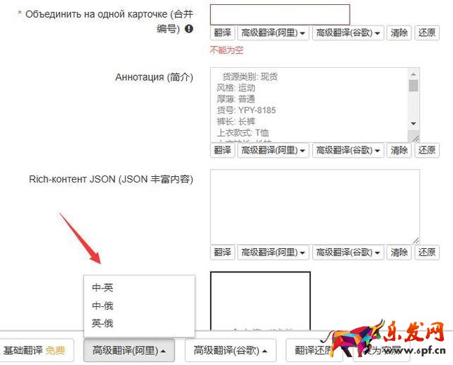 如果是刊登時(shí)候?qū)?biāo)題、描述的翻譯,可以用芒果店長(zhǎng)自帶的“高級(jí)翻譯”功能,支持“中譯英”、“中譯俄”、“英譯俄”。