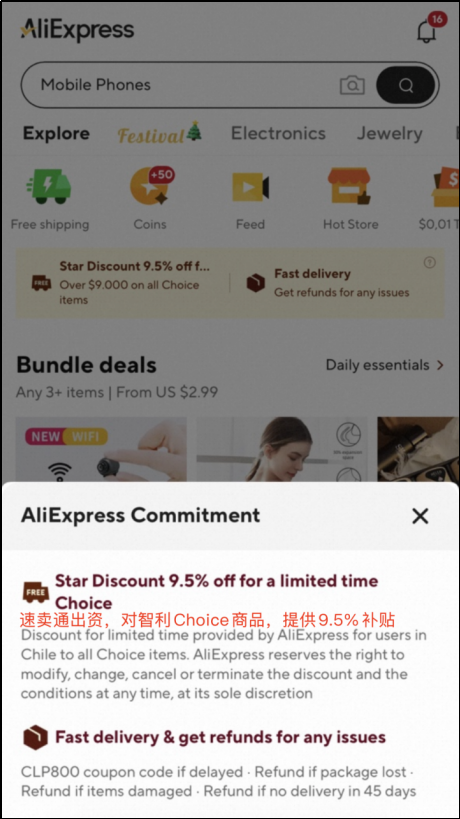1、平臺補貼:平臺出資,對全量智利Choice商品提供9.5%的“Star Discount”補貼;